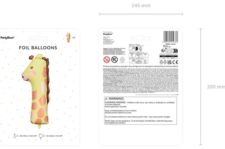 Balon foliowy Cyfra 1 – Żyrafa, 42x90cm