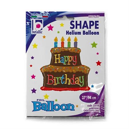 Foliowy balon w kształcie urodzinowego czekoladowego tortu do pompowania powietrzem lub helem.