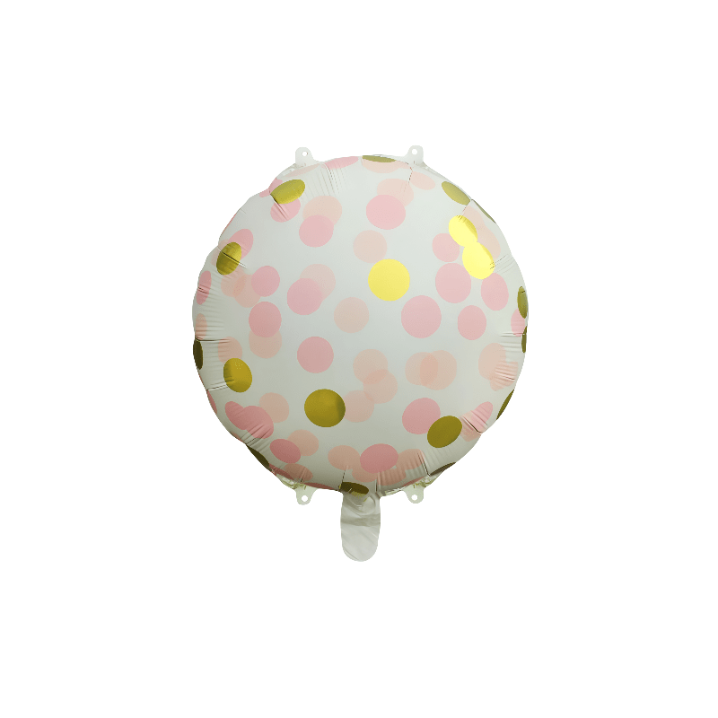Balon foliowy okrągły w różowo-złote grochy to świetna dekoracja na Walentynki, urodziny, imieniny, rocznicę ślubu.
