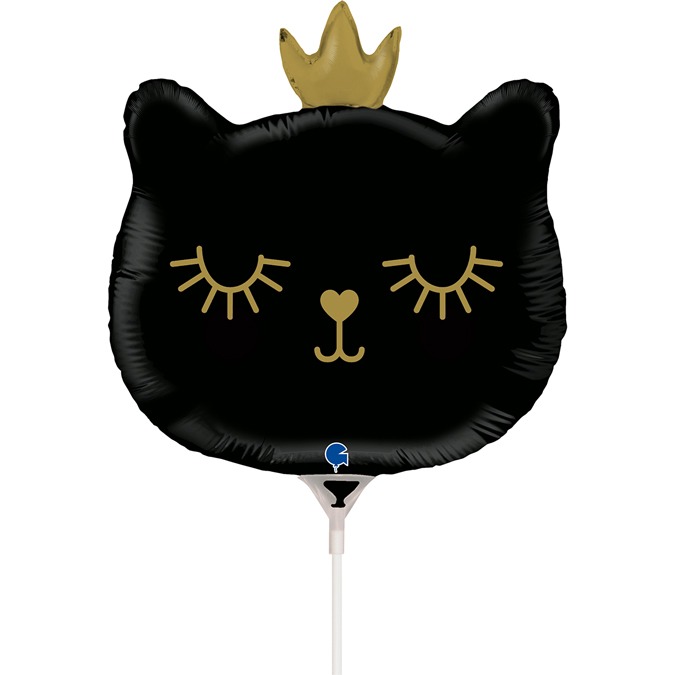 Balon foliowy w kształcie słodkiego czarnego kotka z koroną.
