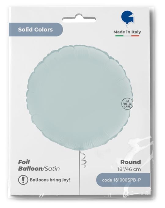 Foliowy balon w kształcie koła w modnym kolorze pastelowym niebieskim z wykończeniem satynowym renomowanej włoskiej firmy.