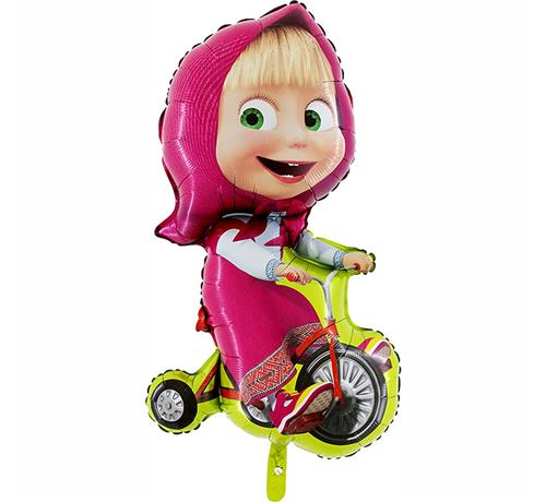 Balon w kształcie postaci dziewczynki MASZY – bohaterki z bajki “MASZA I NIEDŹWIEDŹ” jadącej na swoim rowerku.