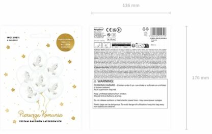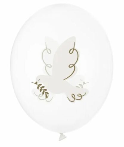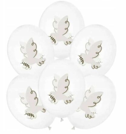 Przezroczyste balony kolorowym dwustronnym nadrukiem gołąbka.