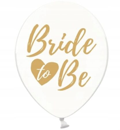 W opakowaniu znajduje się 5 przezroczystych balonów ze złotym napisem: Bride to Be