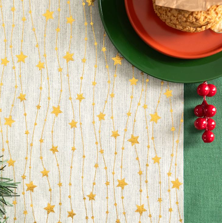 Bieżnik bożonarodzeniowy Gwiazdki beżowo-złoty 275x28cm