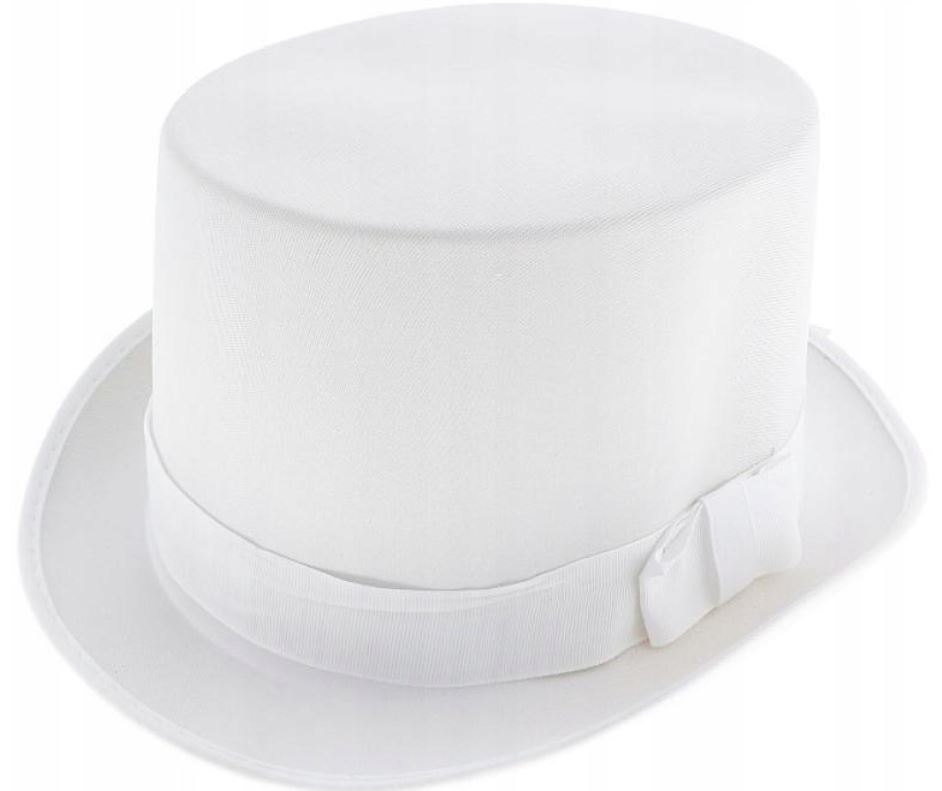 Elegancki biały cylinder idealny na szaloną imprezę, wieczór kawalerski, karnawał, urodziny.