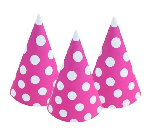 Czapeczki papierowe w kolorze różowym w białe groszki.