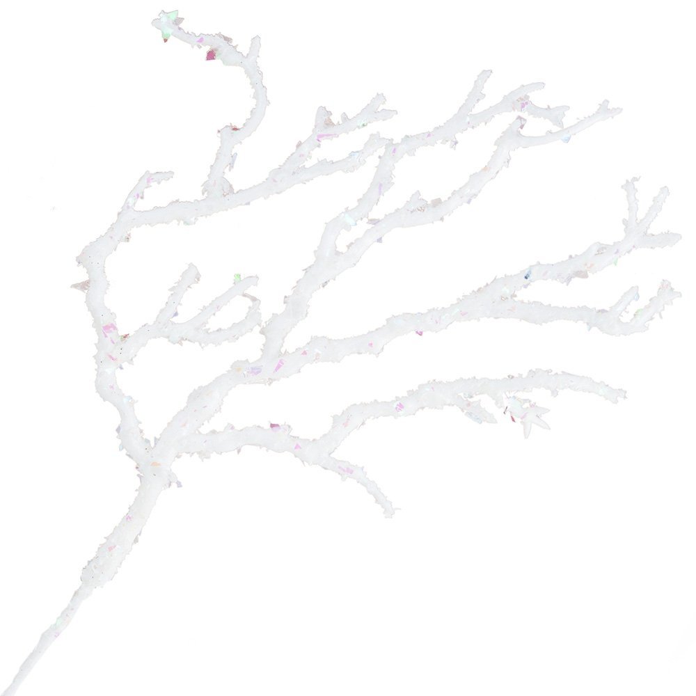 - Produktem sprzedaży jest brokatowa gałązka. Pokryta została białym brokatem.