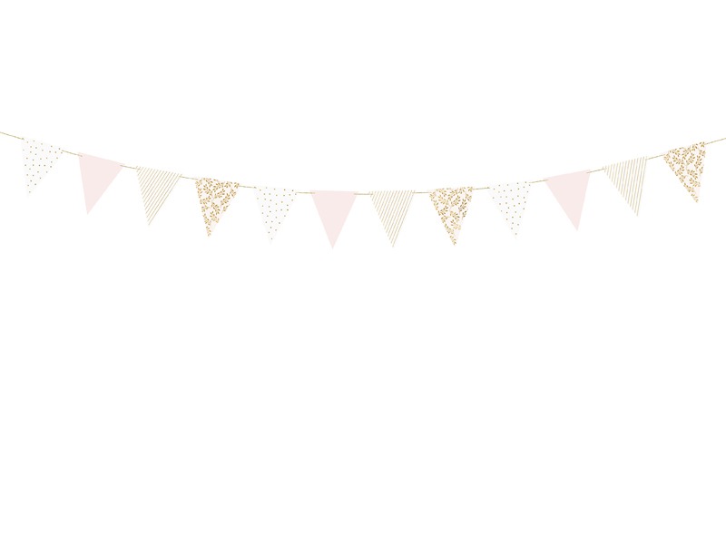 Girlanda flagietki, mix kolorów ze złotym nadrukiem, do samodzielnego złożenia, zestaw zawiera 12 flagietek i ok. 3 m złotego sznurka.