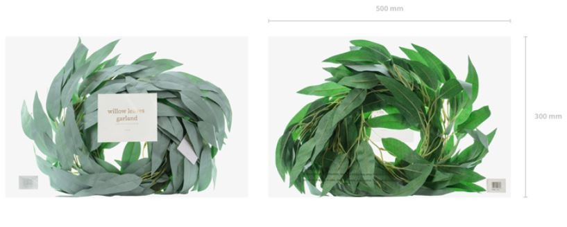 Girlanda Liście wierzby w kolorze zielonym, wysokość ok. 8 cm, długość ok. 2 m.