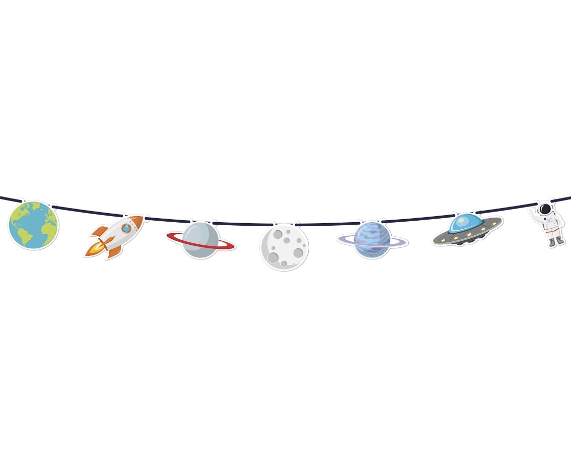 Girlanda z motywem KOSMOSU wykonana ze sztywnego papieru.
