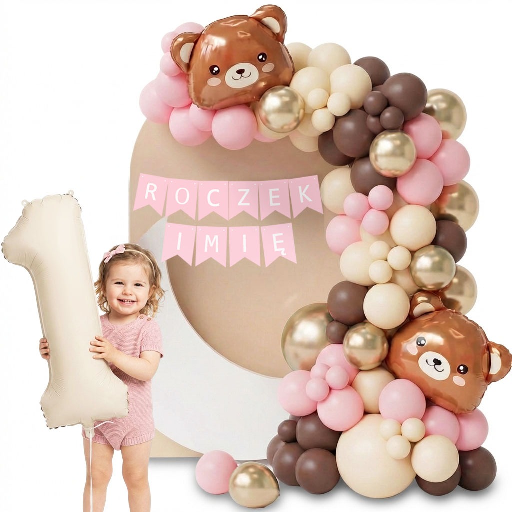 GIRLANDA ROCZEK BR/BEŻ/RÓŻ MIŚ + IMIĘ