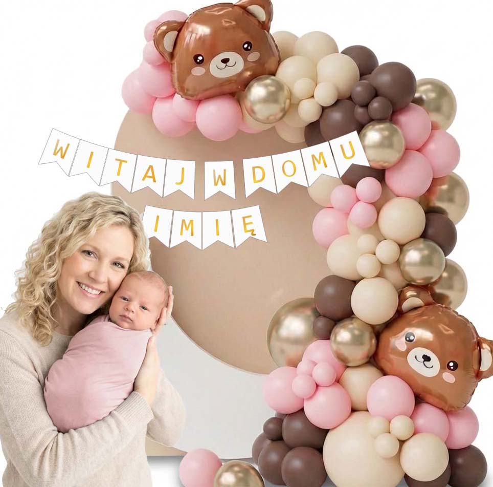 🧸🎀 GIRLANDA WITAJ W DOMU Z MISIEM + BANER Z IMIENIEM DZIEWCZYNKI 🎀🧸