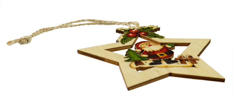 OZDOBA ŚWIĄTECZNA DREWNIANA GWIAZDA MIKOŁAJ 3szt T