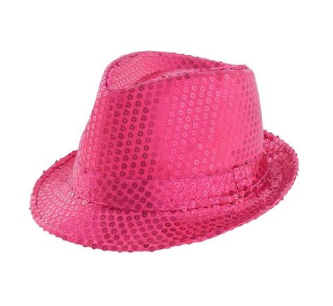 Kapelusz wykonany z różowego materiału.