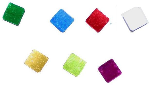 Opakowanie zawiera wielokolorowe konfetti w kształcie kwadratów.