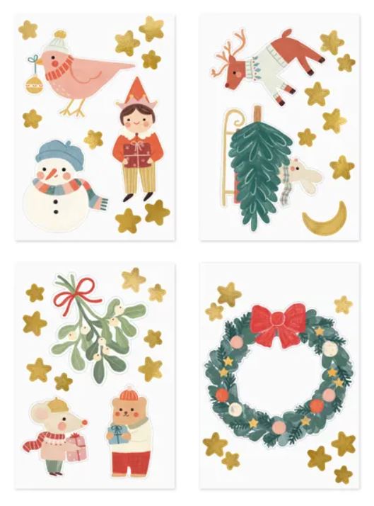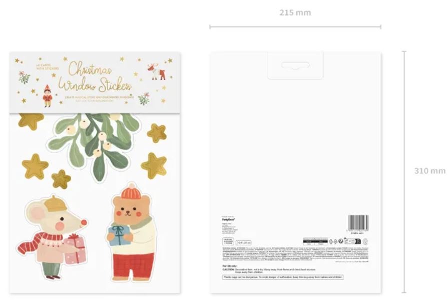 Naklejki na okno Merry Christmas, zestaw zawiera 40 naklejek w 11 wzorach, mix kolorów.