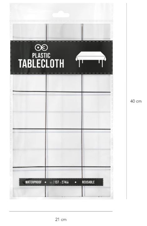 OBRUS FOLIOWY KRATKA BIAŁO-CZARNY 137x274cm