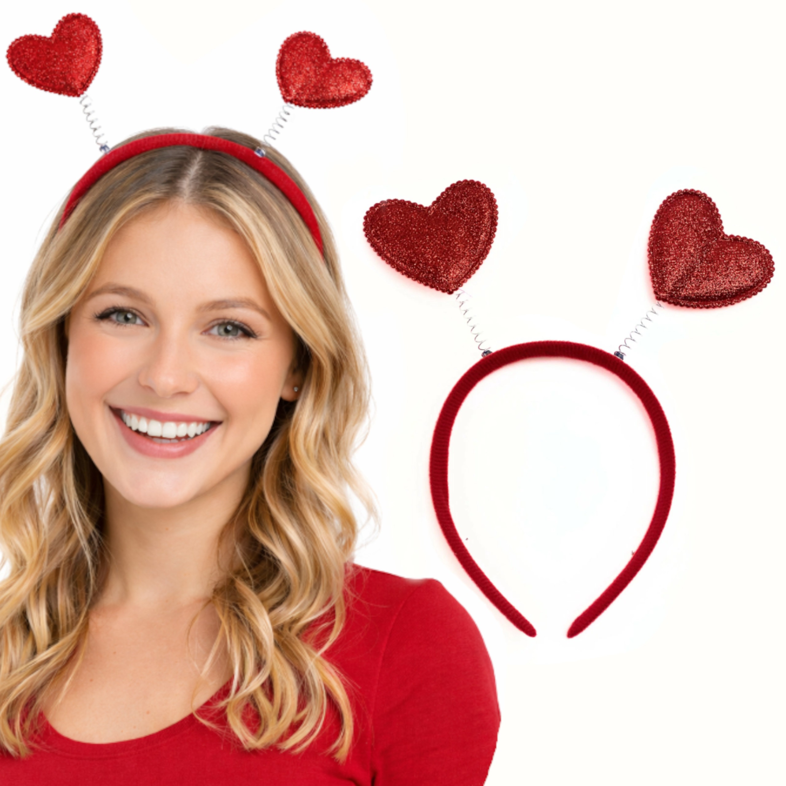 Stylowa i zabawna opaska z czerwonymi serduszkami na sprężynkach to idealny dodatek do walentynkowych stylizacji, wieczorów panieńskich i sesji zdjęciowych. Błyszczące serca delikatnie poruszają się przy każdym ruchu, tworząc romantyczny i efektowny wygląd, który pięknie prezentuje się na zdjęciach i filmach.