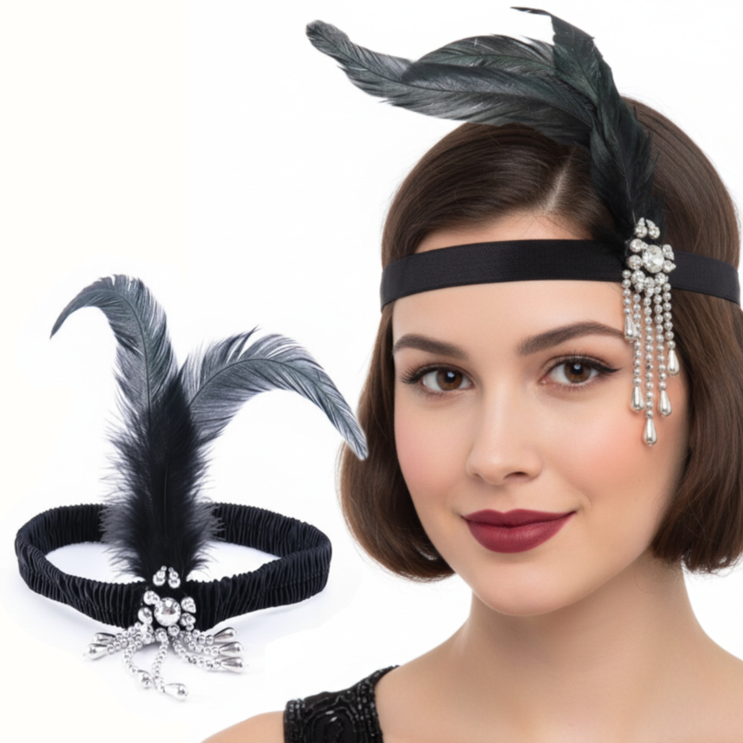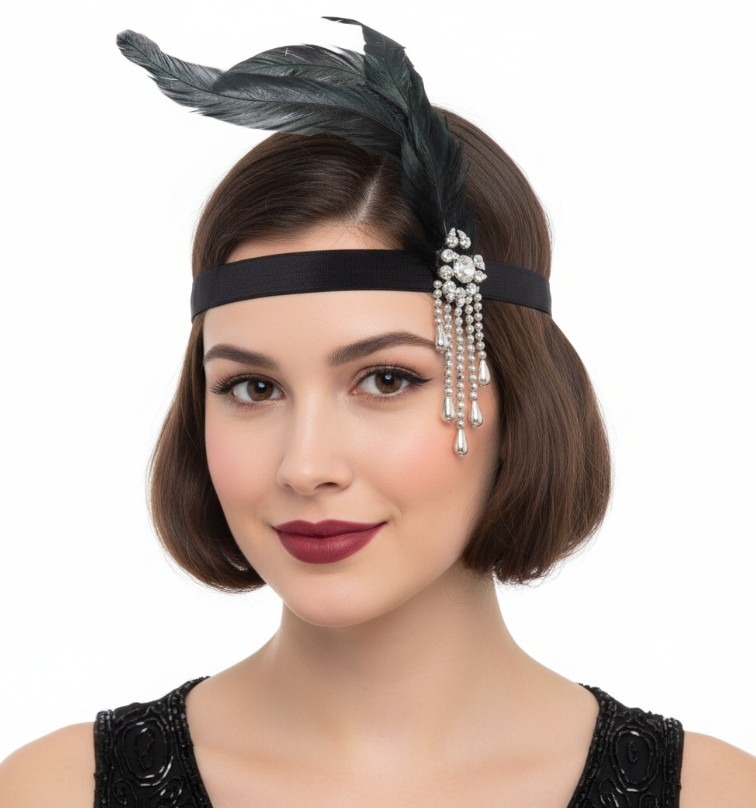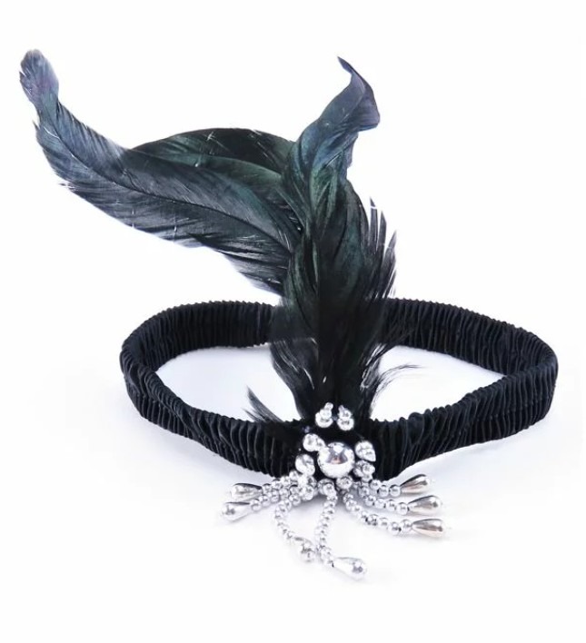 • 1 opaska Charleston z piórami i kryształkami