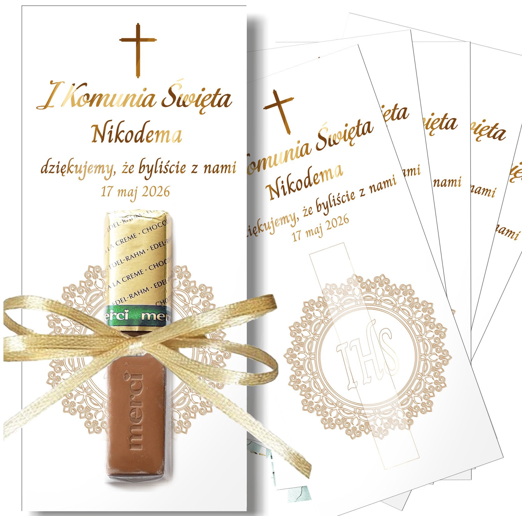 Personalizowane Bileciki z podziękowaniem za udział w uroczystości Komunii Świętej.