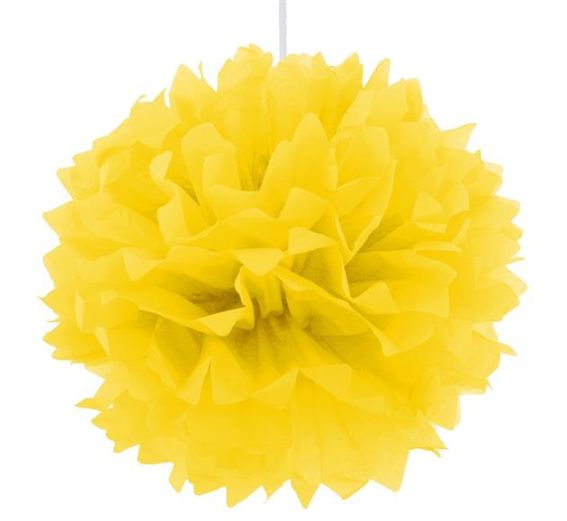 Rozkładany papierowy pompon dekoracyjny w kolorze żółtym.