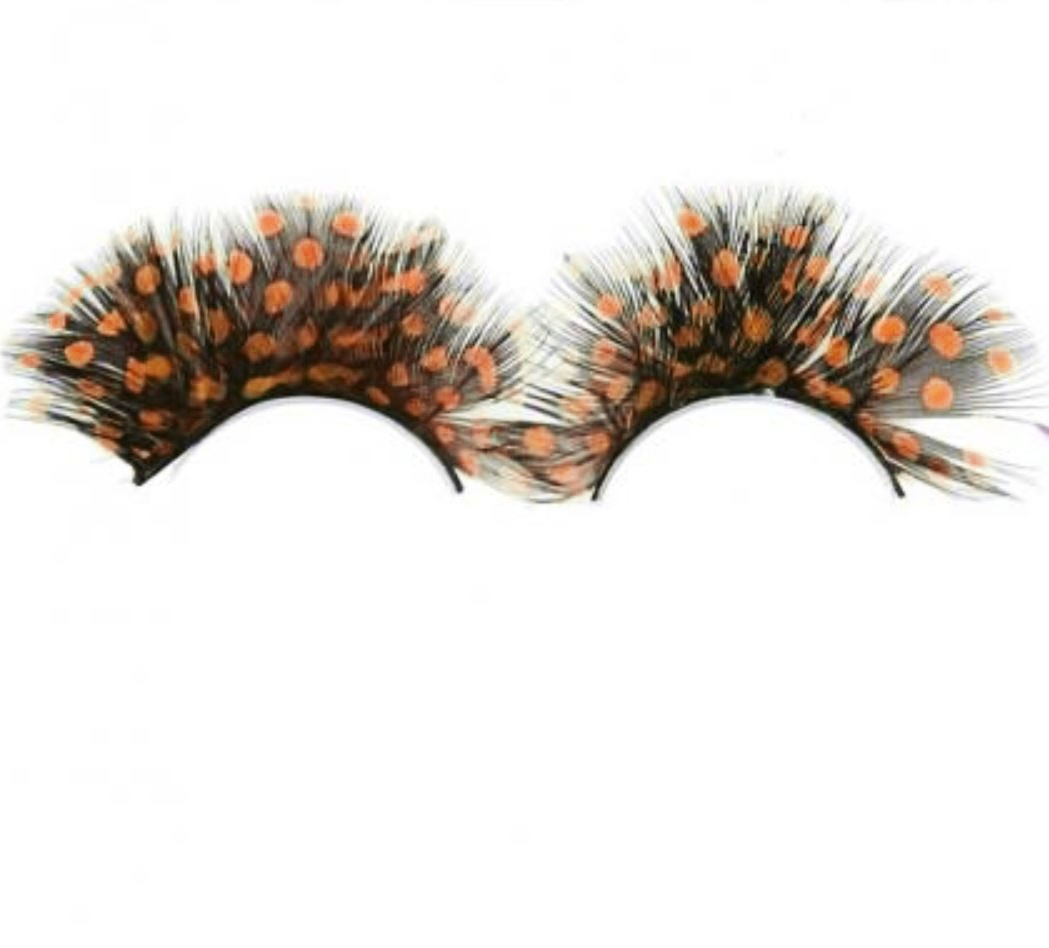 Rzęsy czarne z pomarańczowymi przebarwieniami.