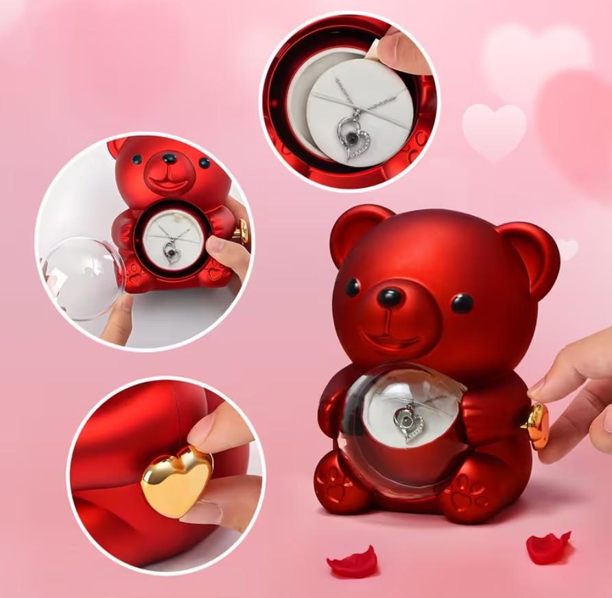 💖🐻 Miś prezentowy z różą – romantyczne pudełko na biżuterię | Walentynki, rocznica, zaręczyny 🐻💖