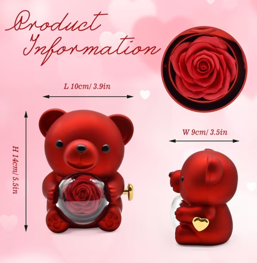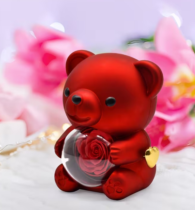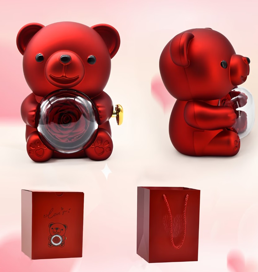 • 1 × miś prezentowy z różą i szkatułką