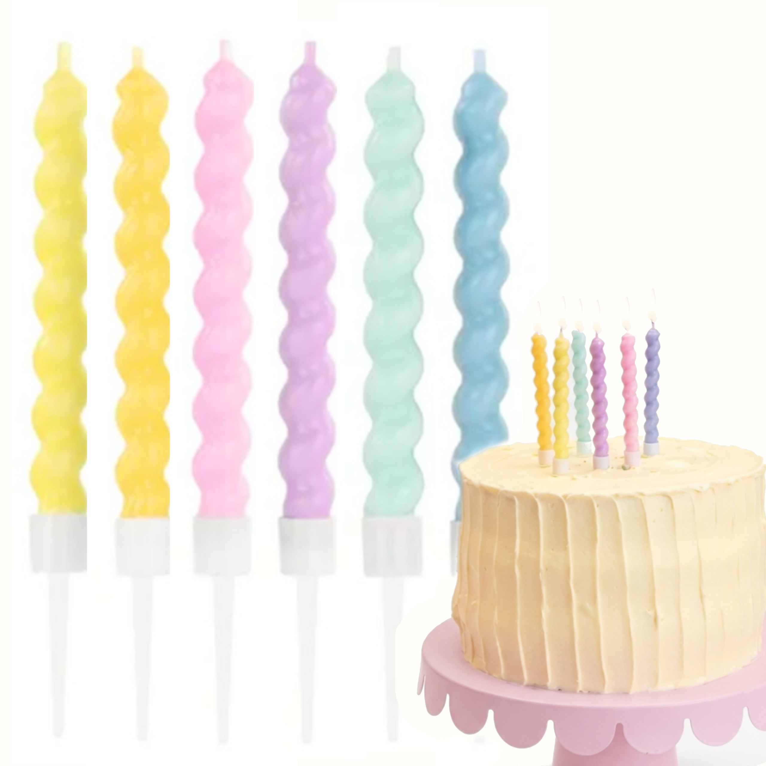 🎂🕯️ ŚWIECZKI URODZINOWE ZAKRĘCONE PASTELOWE – 6 SZT. NA TORT URODZINOWY, KOLOROWE ŚWIECZKI NA TORT 🕯️🎂