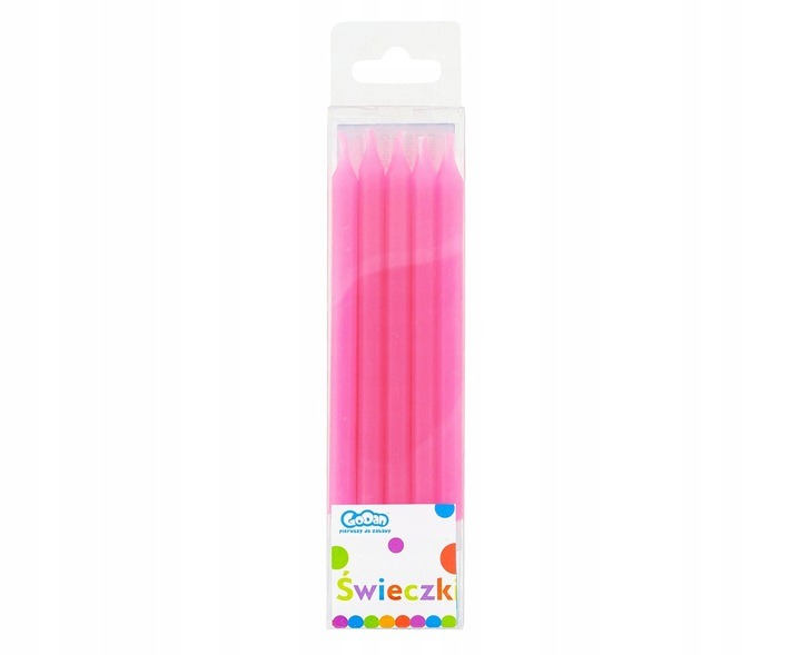 1 op. zawiera 10 różowych gładkich świeczek z podstawkami.