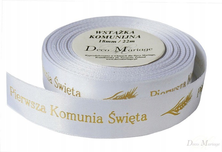 WSTĄŻKA dekoracja na Komunię KOMUNIA 18mm/22m