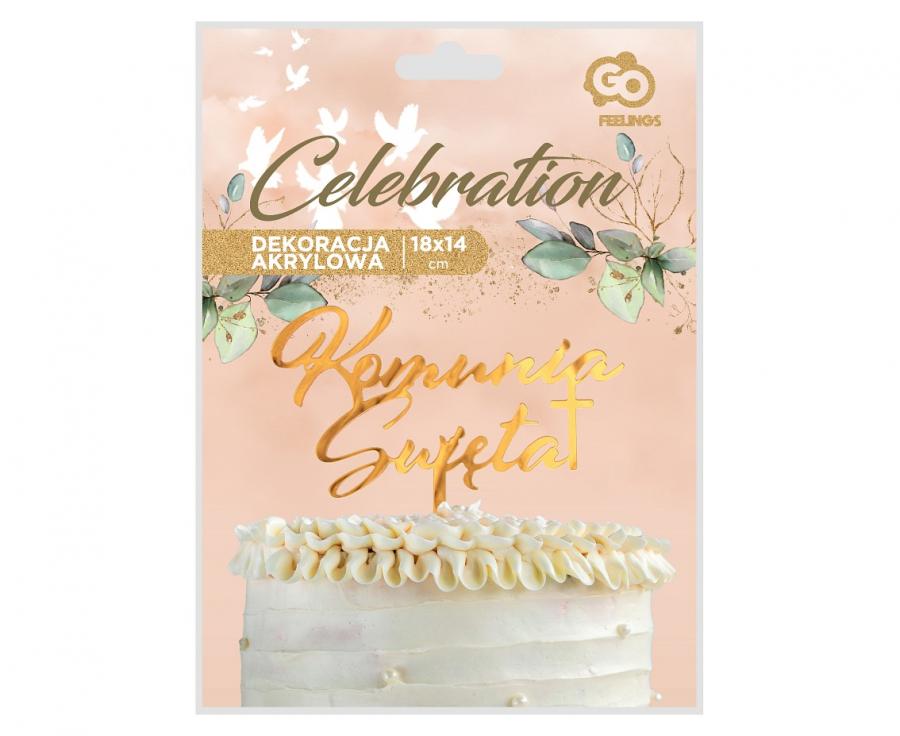 TOPPER AKRYLOWY KOMUNIA ŚWIĘTA ZŁOTY NA TORT