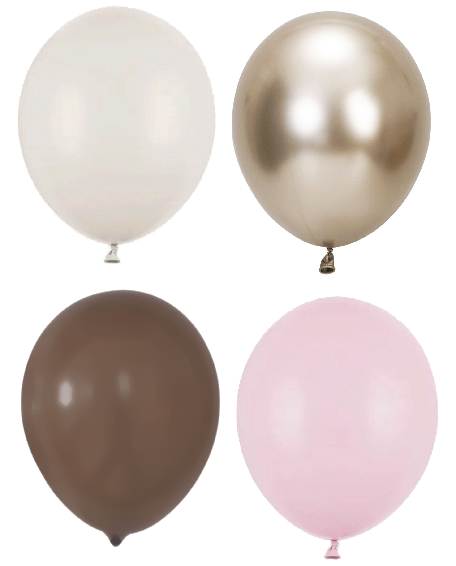 • Balony lateksowe BRĄZ: 15 × duże 12 cali + 10 × małe 5 cali.