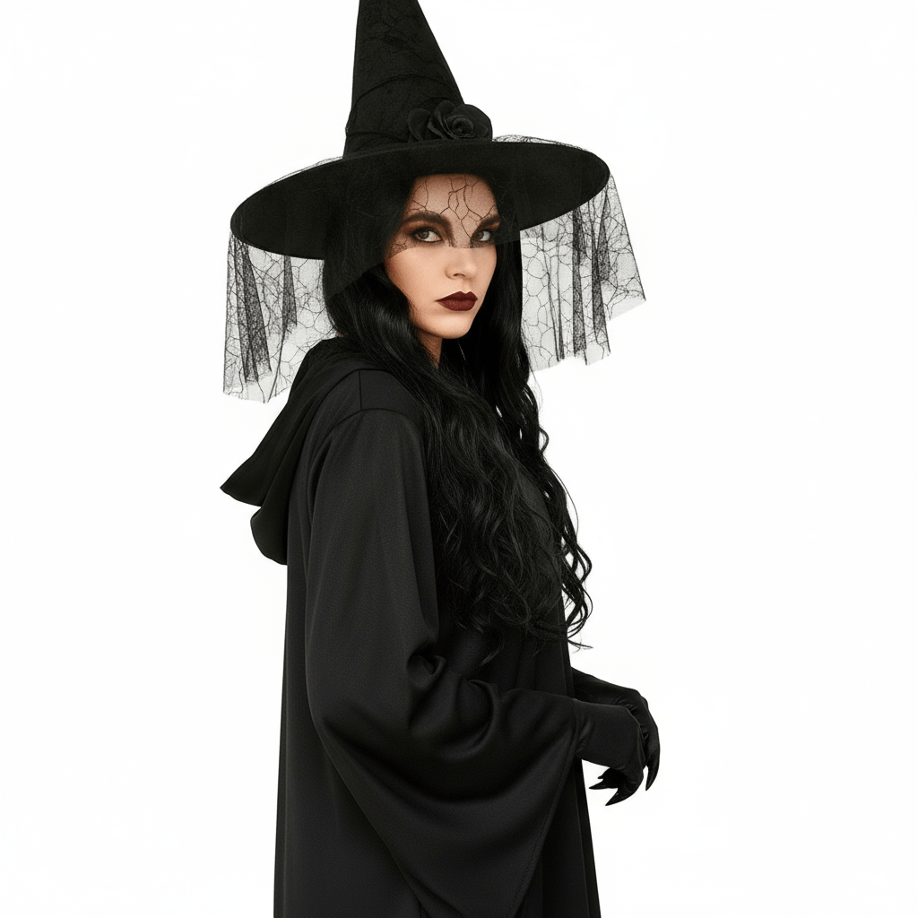 ✅ Kompletny strój czarownicy – w zestawie znajdziesz czarną szatę, elegancki kapelusz wiedźmy oraz rękawice z pazurami. To gotowe przebranie, które zamieni Cię w prawdziwą czarodziejkę już w kilka chwil. Idealne na Halloween, karnawał, bal przebierańców czy przedstawienie teatralne.