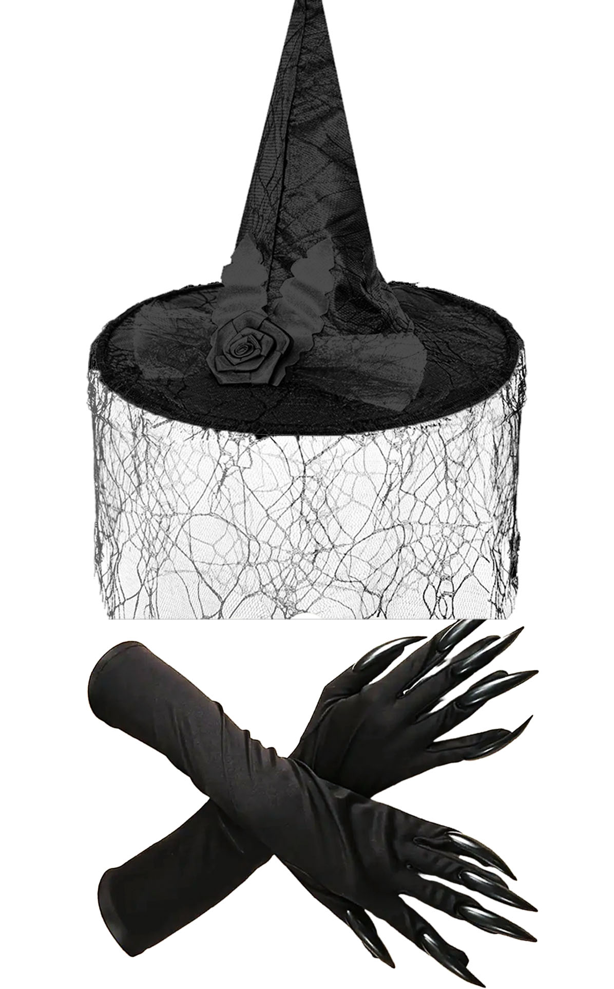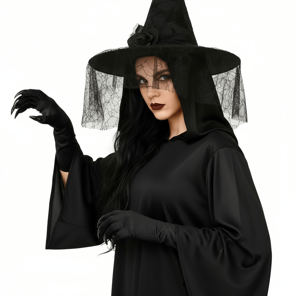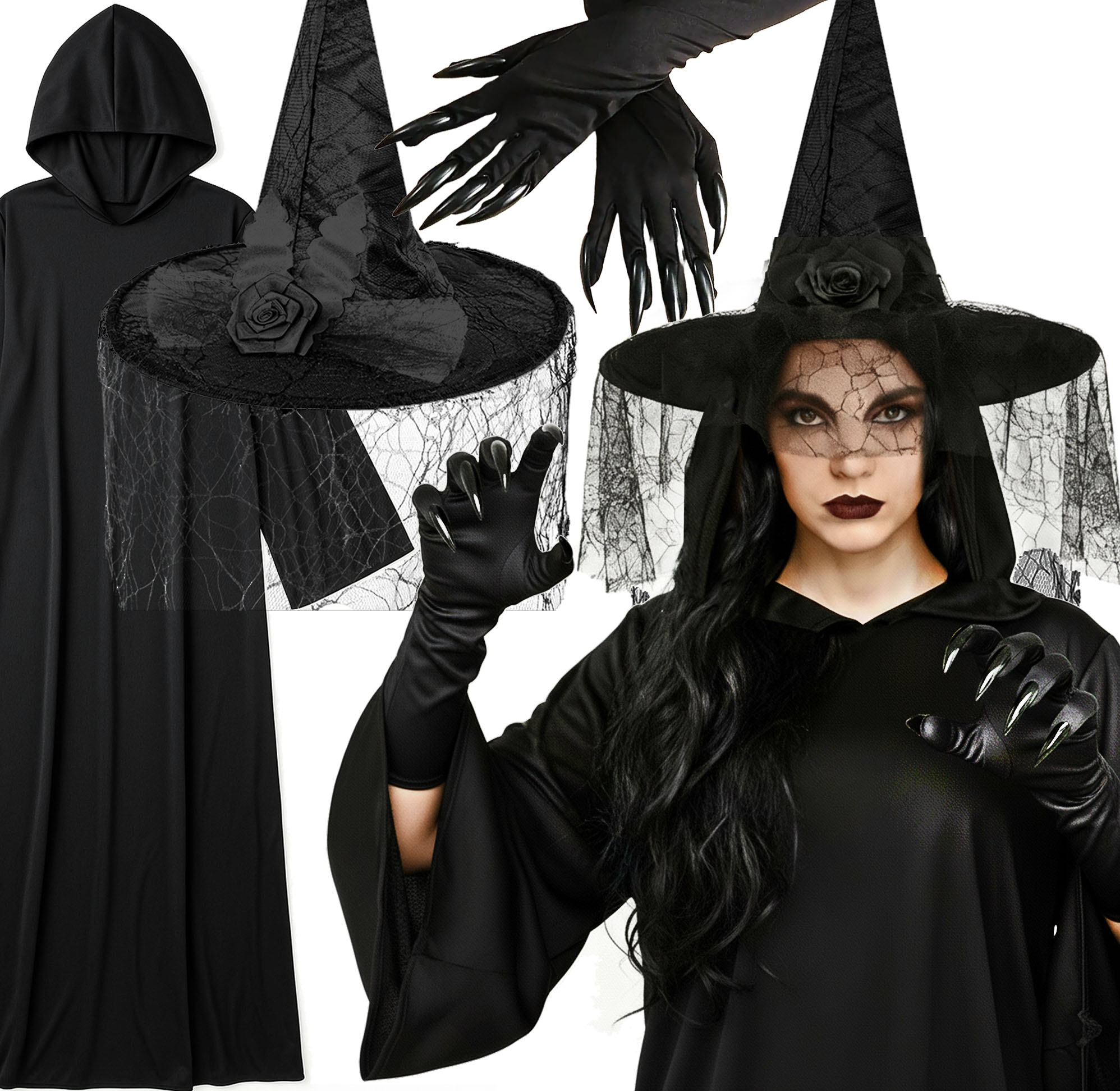 ⭐ Zestaw Czarownicy – Szata + Kapelusz + Rękawice z Pazurami