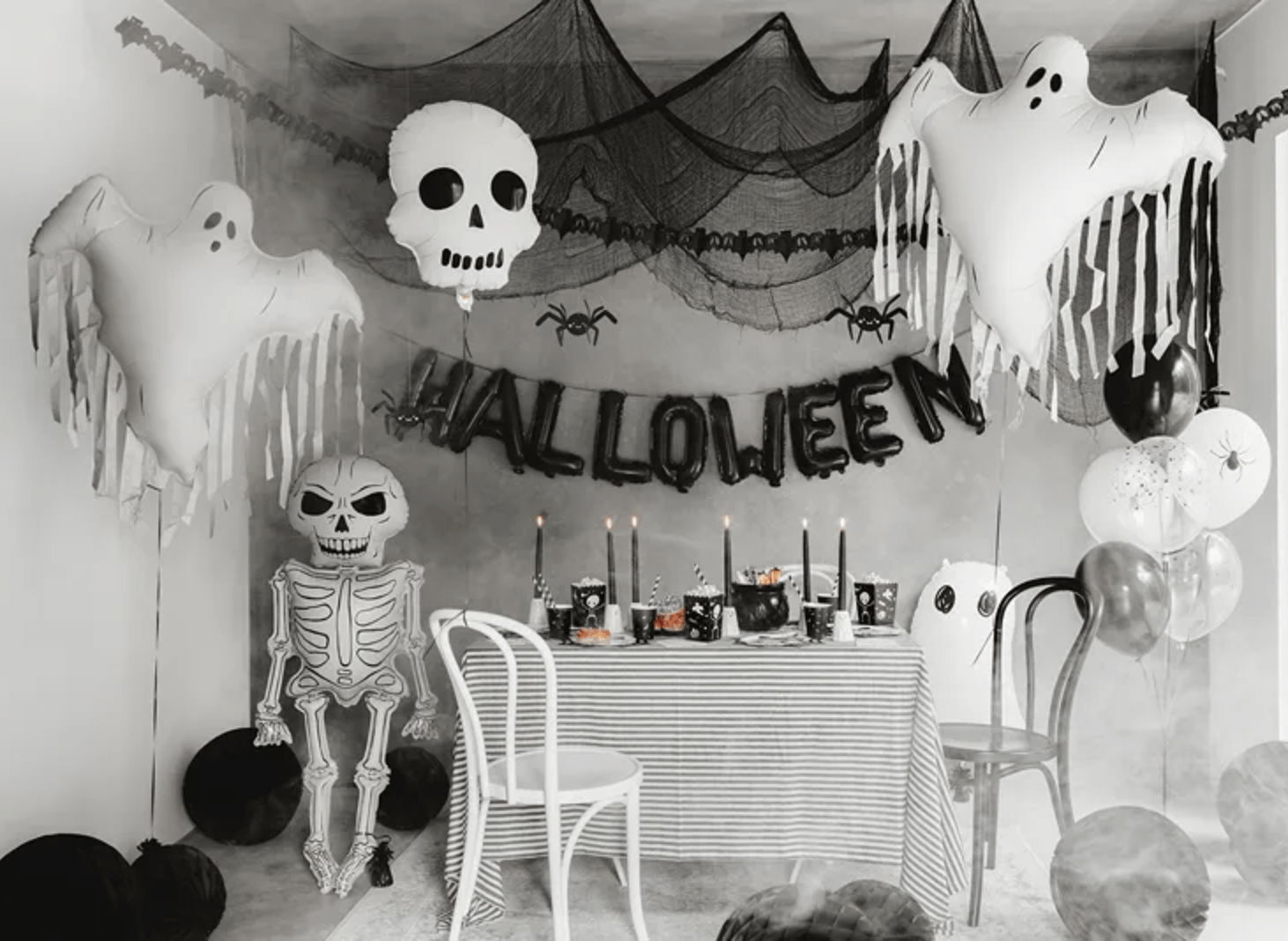 🕷️ Dodaj odrobinę grozy – rozciągnij czarną płachtę i porozrzucaj pająki, by stworzyć mroczną, halloweenową atmosferę!
