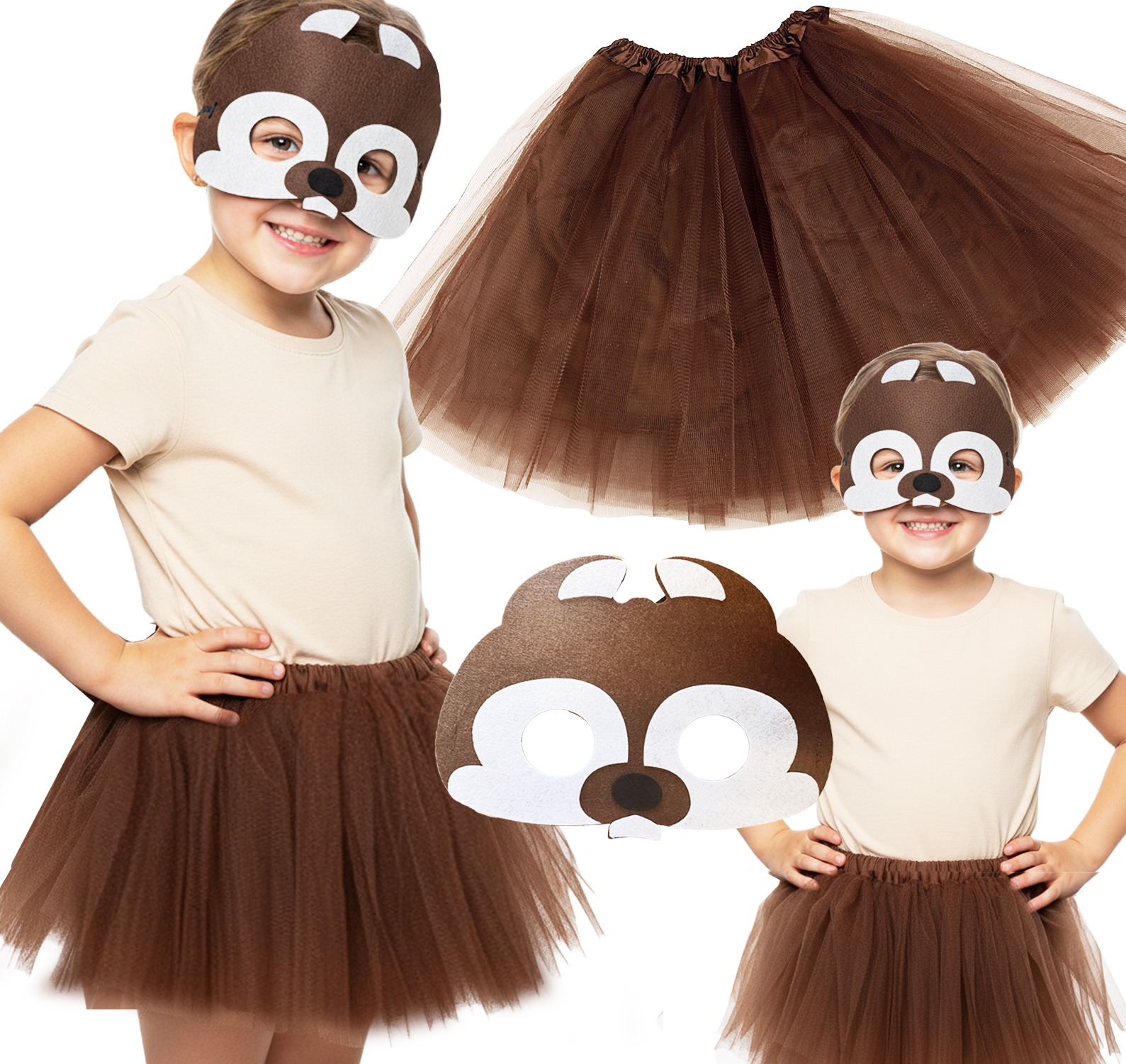 ✅⭐ Zestaw Wiewiórka brązowy dla dzieci – spódniczka + maska filcowa ⭐✅