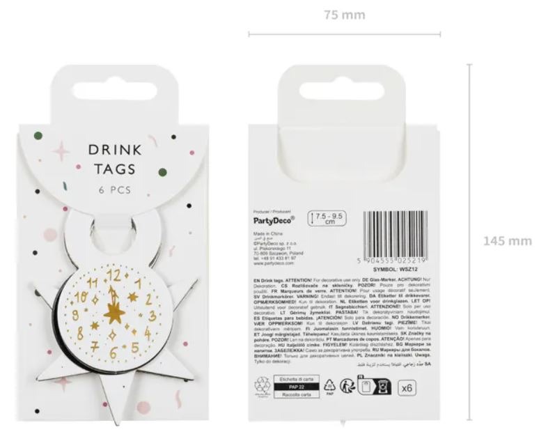 Znaczniki na kieliszki Happy New Year, 7.5-9.5 cm